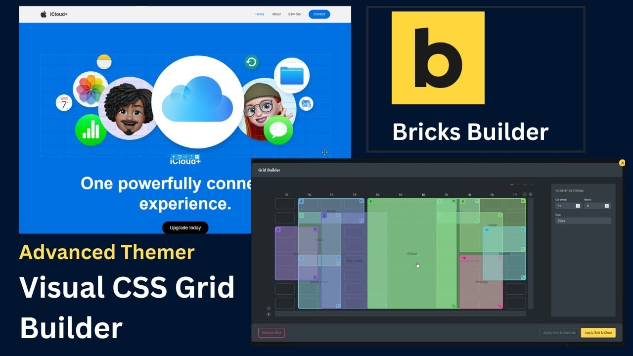 "Today's video is a mockup of the iCloud 2023 page including the overlapping grid. I used Bricks Builder and Advanced Themer to get the ease css grid overlapping effect. With Advanced Themer's new visual CSS grid builder, you can design with ease complex grid layouts including overlapping and query loop compatible. ".